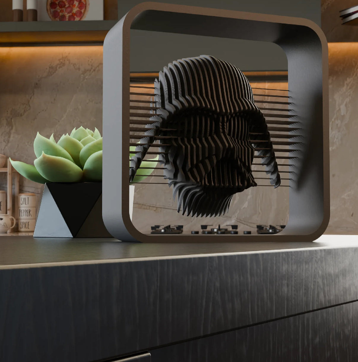 Bring the power of iconic villainy into your space with this suspended layered 3D figurine. Crafted with precision, it showcases a striking layered design that captures the commanding presence of a dark, armored overlord. Perfect for display on shelves, desks, or as a centerpiece in a themed collection.